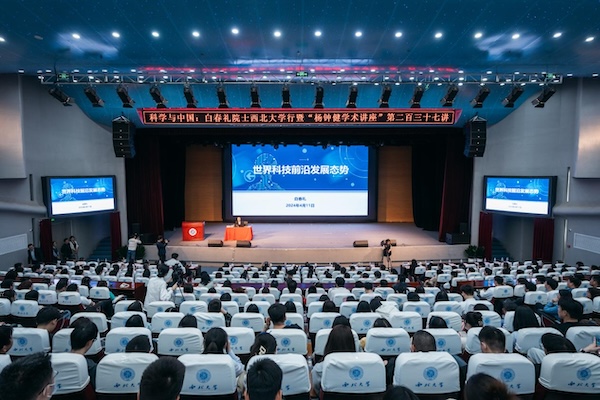 4月11日下午,由中国科学院、中国科协等六家单位共同发起的“科学与中国”院士专家巡讲团活动走进陕西。中国科学院院士白春礼应邀在西北大学作题为《世界科技前沿发展态势》的科技报告。