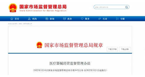 国家市场监管管理总局令第54号《医疗器械经营管理办法》