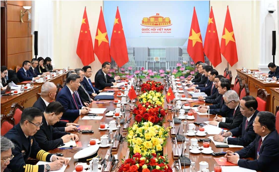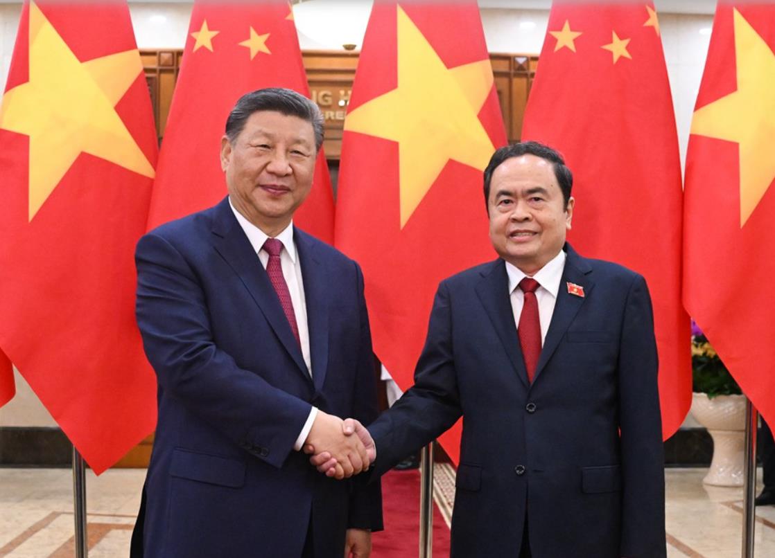 4月14日晚,国家主席习近平在越共中央驻地会见越南国会主席陈青敏。
