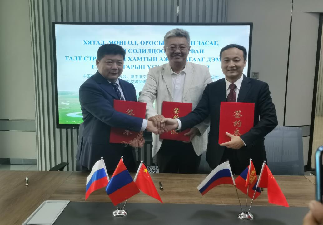 期间,中国基本建设优化研究会与蒙古国蒙中俄文化与经济促进会、远东资信有限公司共同签署了三方战略合作协议,共同推进落实会谈成果。