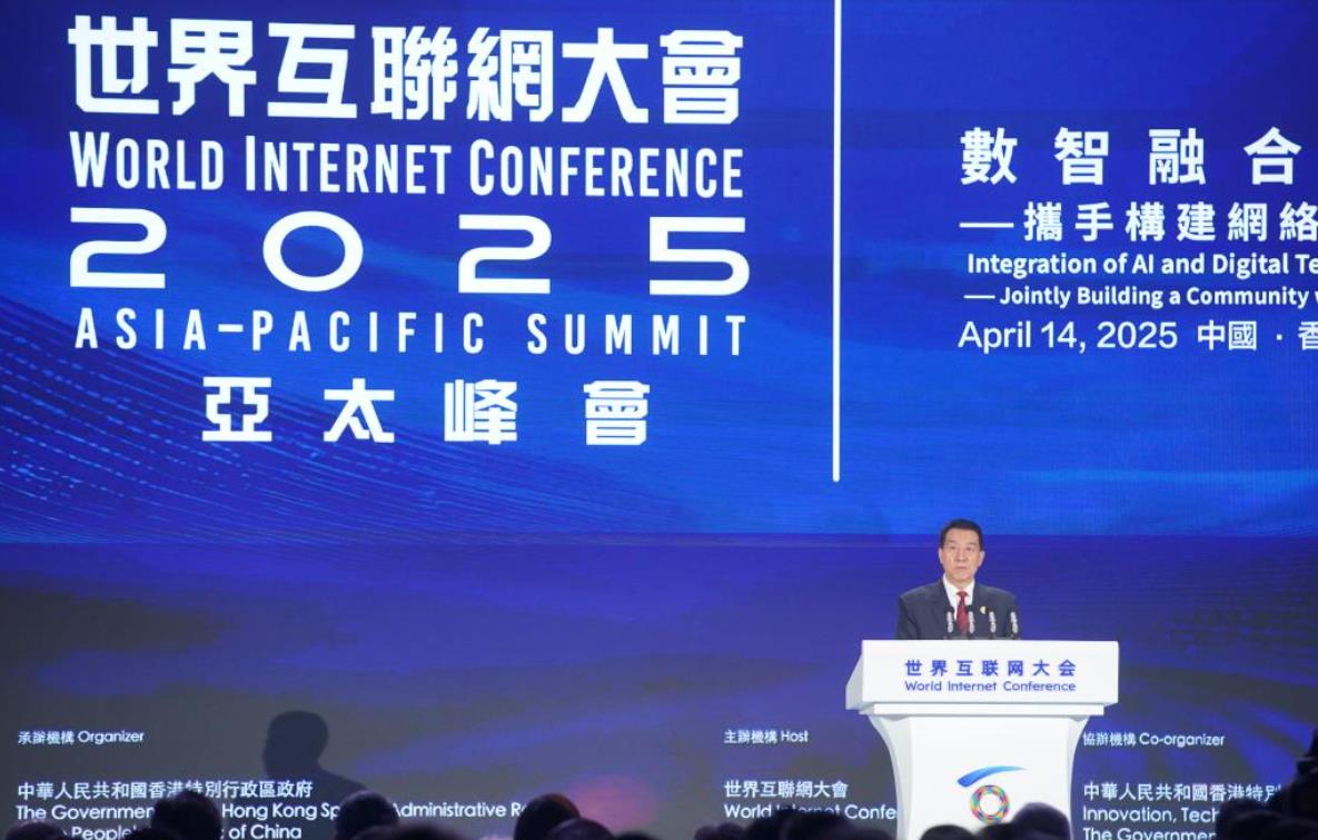 4月14日,全国政协副主席王勇在开幕式上致辞。当日,为期两天的2025年世界互联网大会亚太峰会在香港会议展览中心开幕。新华社发(吕小炜摄)