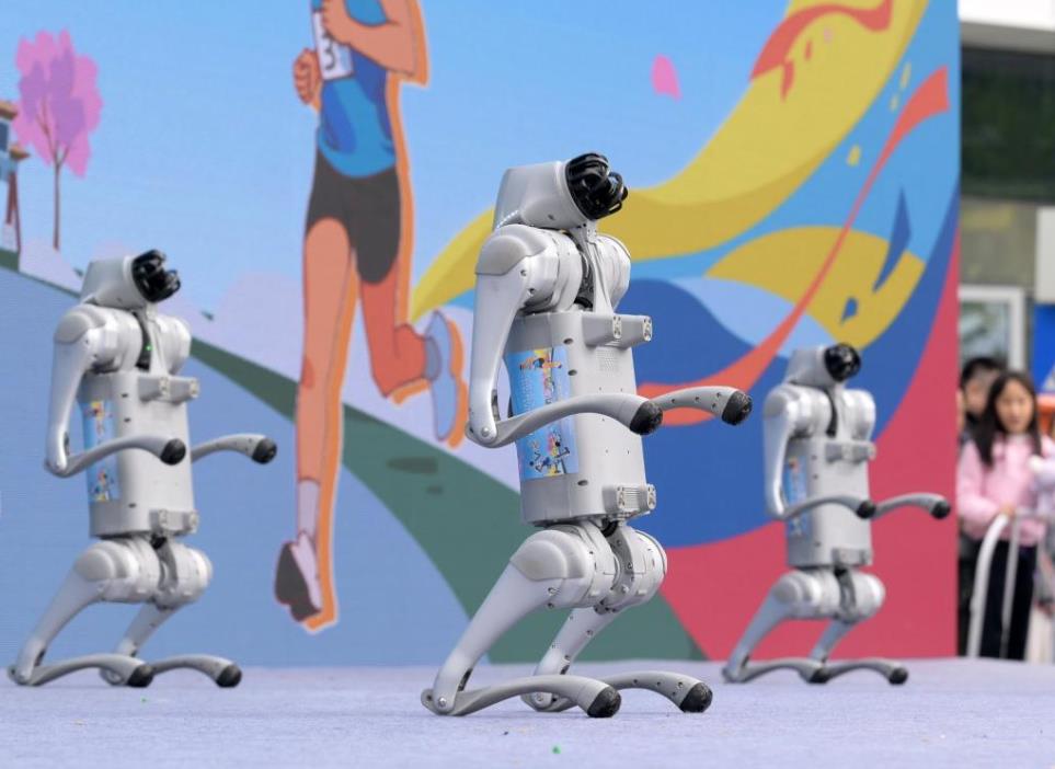 4月19日,机器人在2025北京亦庄半程马拉松暨人形机器人半程马拉松活动现场进行表演。新华社记者 李贺 摄