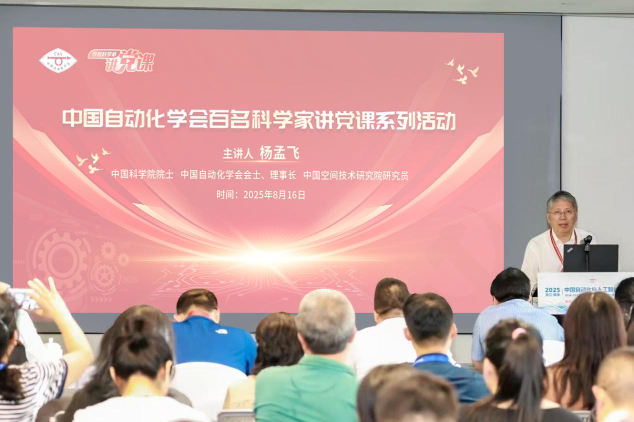 8月16日,中国自动化学会2025年度第1期“百名科学家讲党课”活动在浙江桐乡举行。中国自动化学会党委书记、理事长杨孟飞作党课报告。学会理事长、秘书长、分支机构代表110余人通过线下和线上的方式进行了学习。
