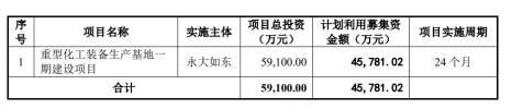 永大股份本次公开发行拟募集资金4.58亿元,全部用于“重型化工装备生产基地一期建设项目”。该项目计划投资总额5.91亿元,已于2025年2月开工建设,建成达产后预计新增压力容器3万吨/年的生产能力,主要用于超大、超长型压力容器的生产。