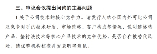 上市委会议上提出问询的第一个问题就是巍特环境技术的核心竞争力。北交所要求巍特环境结合国内外可比公司及竞争对手的技术研发、市场策略、客户构成等情况,说明速格垫产品、垫衬法技术等核心产品技术的竞争优势,是否存在被替代风险。
