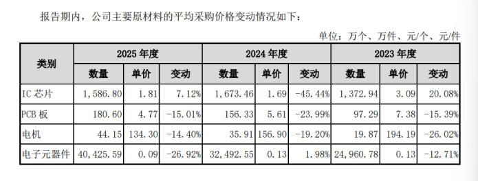 电子元器件采购占比约20%,供应商较为分散,报告期内采购均价波动较大,2025年采购价格下降26.92%;主要IC芯片均通过贸易商采购,采购价格持续下滑,2024年采购均价同比下滑45.44%。北交所对此的质疑直指核心:定价公允性如何?是否存在利益输送?