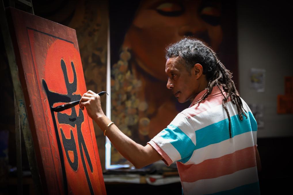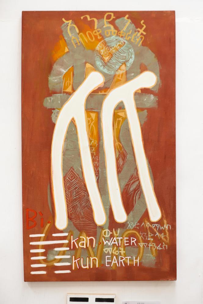 虽然达维特不会说中文,但几年前经好友、画廊负责人戈萨·奥达推荐阅读了英文的《易经》相关读物,立即对这本书产生了浓厚兴趣。为了更好地进行创作,达维特与朋友通过互联网获取了更多关于《易经》卦名汉字的信息。他惊奇地发现,埃塞俄比亚和中国的古代文明、文字书写以及两国人民对待自然的态度有着许多相似之处。比如,中文和阿姆哈拉语中“太阳(日)”的书写就十分相似。