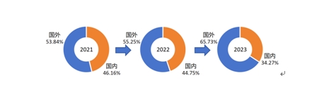 成效如何?闻泰不断和全球重量级大客户开展合作:2021年,海外营收占比53.84%,到2023年,已经达到65.73%。