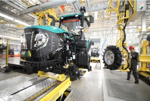 作为国内农机行业首家“智慧工厂”,今年5月份正式投产的潍柴雷沃智慧农业智能拖拉机制造基地一片忙碌,来自全国各地及海外的订单,让生产线一刻不得闲,平均每4分钟下线一台高端拖拉机的“智”造速度,重新定义着中国农机智造新高度,也是中国农机迈向“智造”时代的典范。