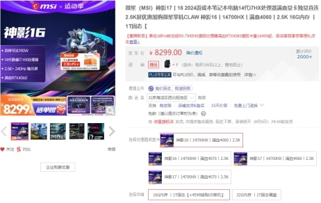 如果是主流游戏玩家,采用全新模具打造的微星神影16也一定要看看:酷睿i7-14700HX处理器 + 140W满血RTX4060的双芯组合是如今主流游戏本的“版本答案”,更重要还有微星的性能调教:双风扇5热管的豪华散热规格,更让双烤性能升级可达190W,进一步拉高上限。屏幕参数也非常顶:同价位鲜有的500尼特高亮度、2.5K+分辨率/240Hz刷新率/100%DCI-P3广色域,实际观感出众。