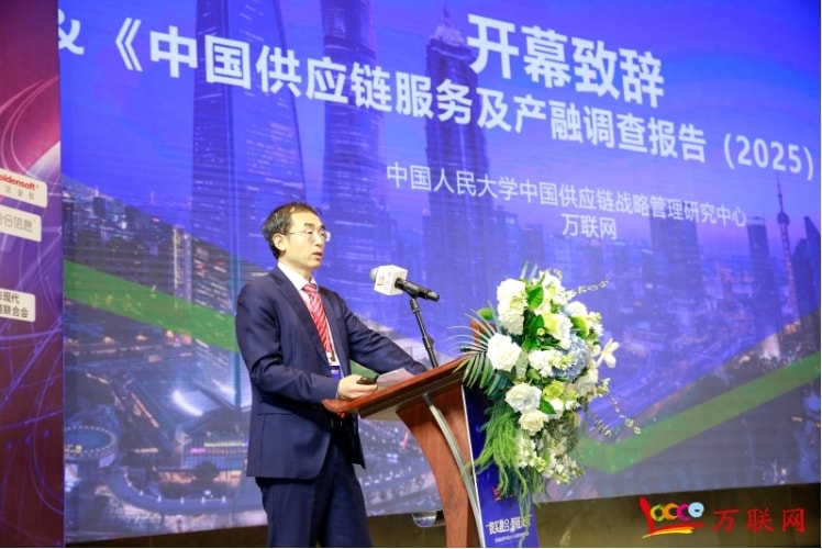 论坛伊始,万联网创始人蔡宇江作开幕致辞并于现场正式发布了《中国供应链服务及产融调查报告(2025)》,并做了相关介绍。