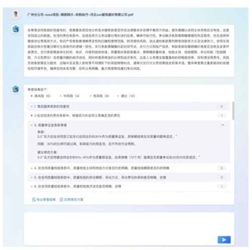 风险实时预警:比对历史案例与法律数据库,标记冲突条款、模糊表述及潜在法律风险;