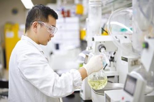 在百济神州北京昌平研发中心实验室,科研人员正在进行药物合成实验。曹曼玲摄