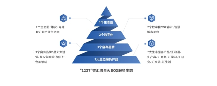 雄安·电建智汇城项目分组团、分地块、分楼栋进行产业落位规划,构建以“智能网联”为核心,以智能建造、新能源、生物医药、高端现代服务等为辅助的“1+N”产业集群,以“雄安机器人大厦、雄安智慧建造大厦”等主题楼宇作为物理承载空间,构建“我的上下游,就在我的上下楼,最远不过隔壁楼”的产业生态圈。