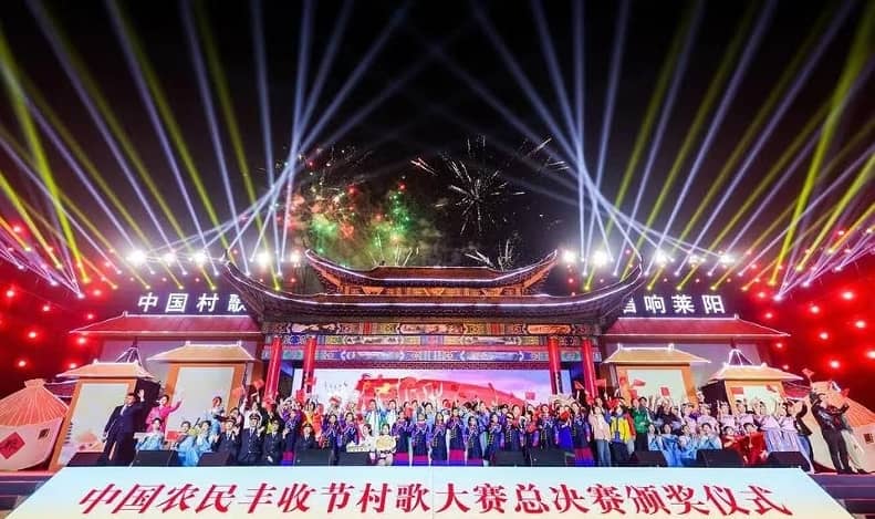 “村歌唱起来,莱阳等你来。和美乡村回荡着欢乐的节拍……”10月26日晚,在《莱阳等你来》歌舞声中,2024年中国农民丰收节村歌大赛总决赛颁奖仪式在莱阳市照旺庄镇梨乡风情旅游区正式启幕,来自全国五大赛区的参赛队伍齐聚于此,用动人的歌声共同庆祝丰收的喜悦。
