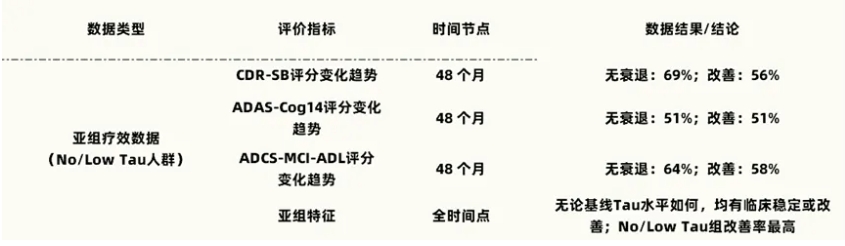 这也使得对于没有(或很少有)Tau蛋白积累的AD患者,也就是更早期AD患者而言,有机会通过仑卡奈单抗阻断AD疾病进展,甚至为神经功能恢复创造条件。