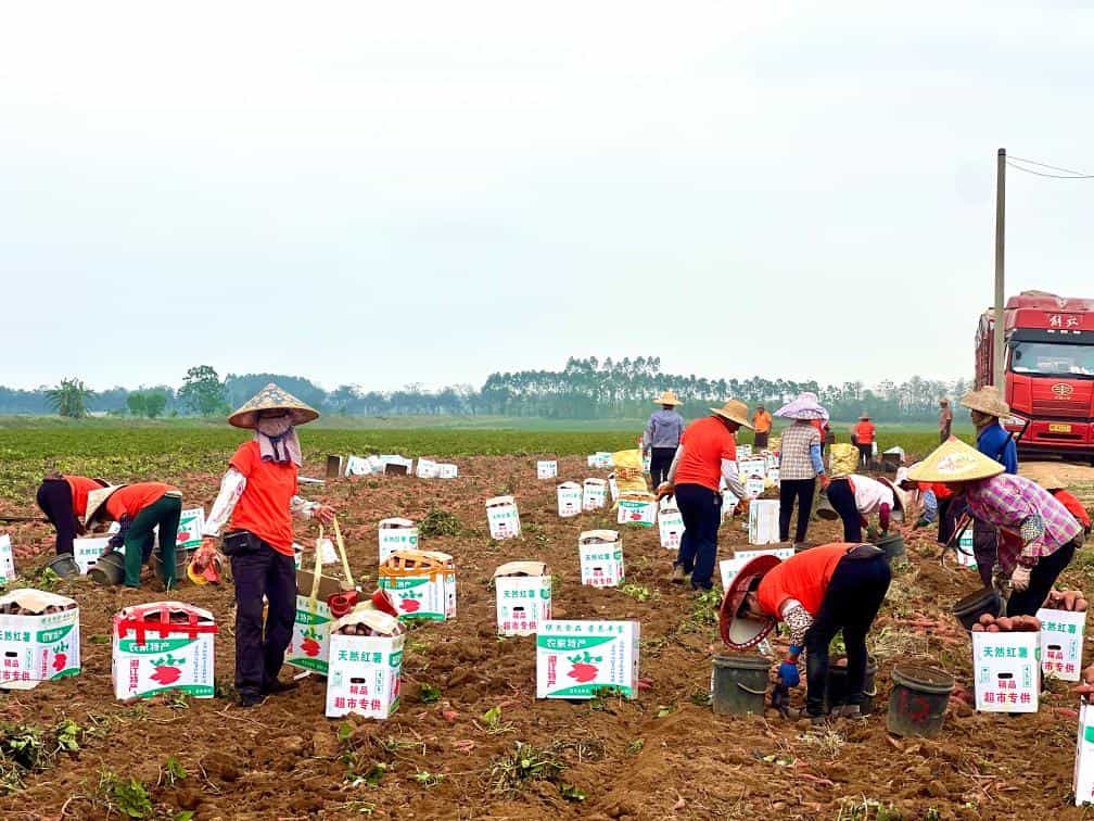 春风送暖,春耕正忙。在中国大陆南端的广东省湛江市遂溪县,田间地头正洋溢着丰收的喜悦,农民们忙碌穿梭在雷州半岛的红土地上,把个大饱满的甘薯分拣、装箱,搬上货车,运往北方。