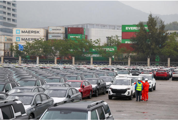 在深圳盐田港,查验人员检查即将出口的汽车(2025年1月22日摄)。新华社记者 毛思倩 摄