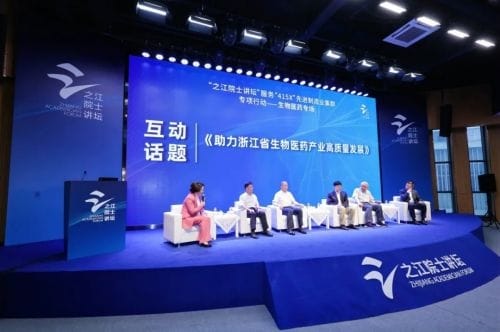 活动现场,陈凯先、丁健两位院士与中国工程院院士、浙江工业大学学术委员会主任郑裕国,中国科学院上海药物研究所党委书记叶阳,浙江省经信厅医药与医疗器械产业处处长钟起沛,围绕“助力浙江省生物医药产业高质量发展”主题,就生物医药领域的研究、产业的发展、创新人才培养、跨领域合作等问题进行互动交流,为浙江省生物医药产业的高质量发展建言献策。