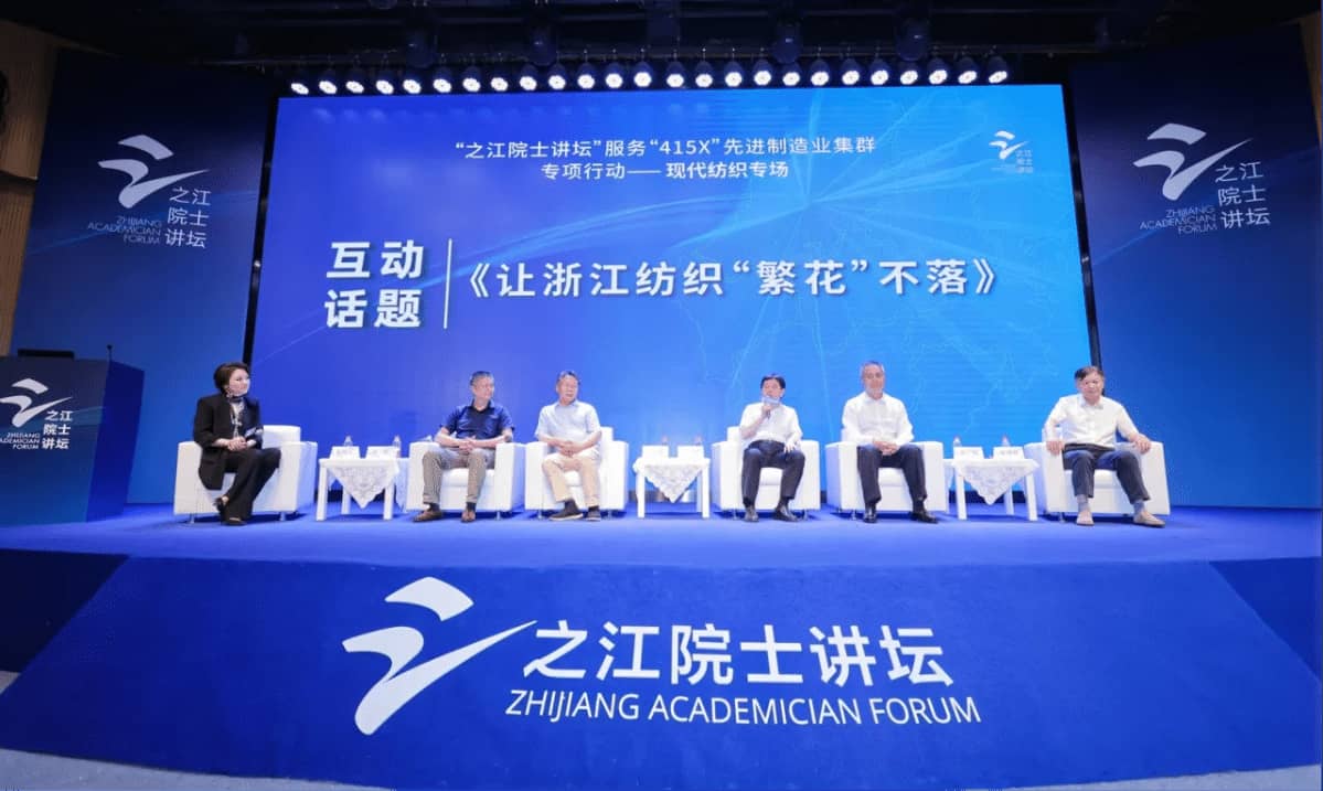 活动现场,俞建勇与中国纺织工程学会理事长伏广伟,浙江理工大学党委委员、副校长郭玉海,天津科技大学学术委员会主任、生物源纤维制造技术国家重点实验室主任程博闻,火石创造副总裁何伟,围绕“让浙江纺织‘繁花’不落”主题,就数字产业与纺织产业如何实现适配最大化、行业公共平台如何更好服务企业、浙江纺织产业如何优化提升产品链产业链创新链等问题进行互动交流,为浙江省纺织产业的高质量发展建言献策。