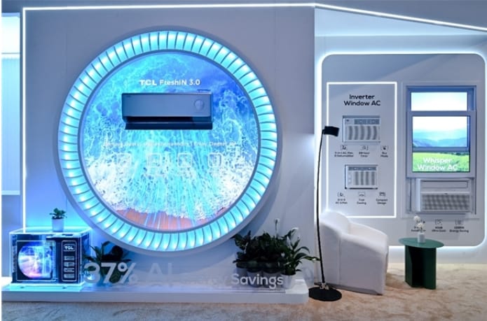 作为TCL全品类智能物联生态中的亮点展品,TCL小蓝翼新风系列空调通过先进的新风功能和空气净化,实现了室内空气质量的显著提升,全方位守护用户的每一次呼吸健康。同时,AI省电、语音控制功能带来了良好的用户体验。2024年,TCL空调产销量已突破2000万套。