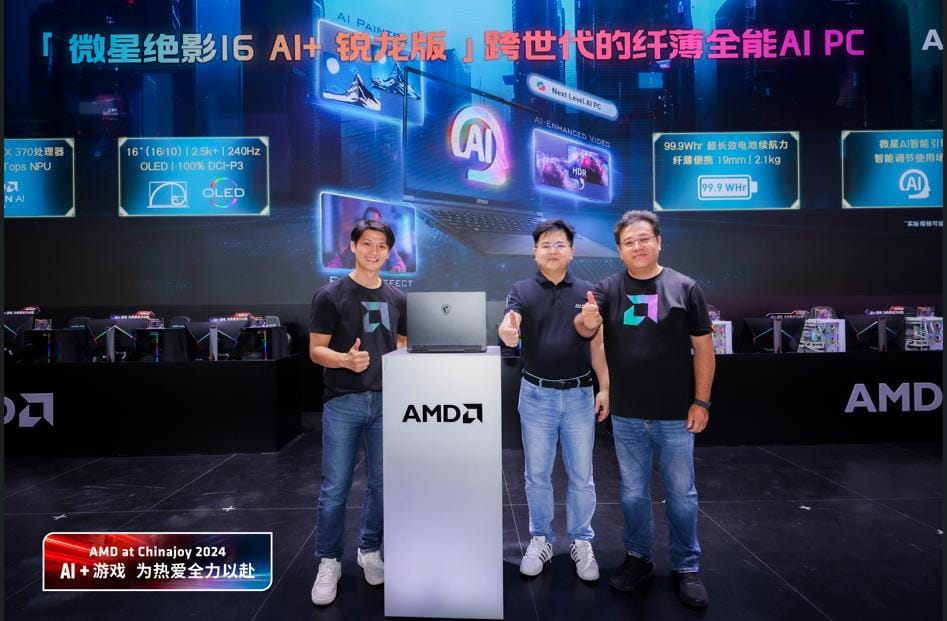 7月27日,ChinaJoy 2024 AMD展台正式发布AMD锐龙AI 300系列移动处理器新品,既为用户带来了升级的游戏性能,又提供了更强的AI算力,AI+游戏,让你无所不能,无所不精!