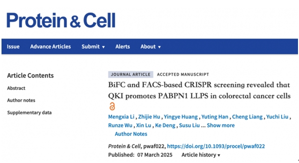 论文题目:BiFC and FACS-based CRISPR screening revealed that QKI promotes PABPN1 LLPS in colorectal cancer cells(BiFC 和 FACS-based CRISPR 筛选揭示 QKI 促