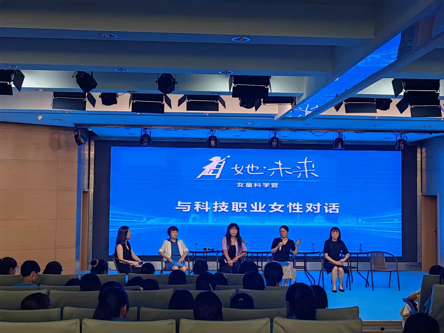 为了让热爱科技的女孩更加自信、勇敢地树立从事科技事业的志向,科学营“与科技职业女性对话”活动特邀北京航空航天大学生物医学院教授帅梅、中国原子能科学研究院高级工程师任秀艳、清华大学工程物理系高级工程师孙立风和北京科技大学工业设计系教授王晓慧等科技工作者与营员深入交流,以个人亲身经历展示科技领域“巾帼不让须眉”的力量,用成长故事引导营员思考如何面对困难,如何学习发展。