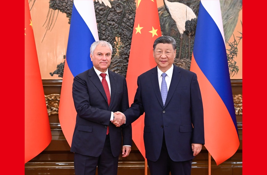 8月26日上午,国家主席习近平在北京人民大会堂会见俄罗斯国家杜马主席沃洛金。