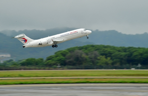 人民网南昌9月10日电 (记者时雨)10日,MU865次航班从南昌昌北国际机场起飞,11时45分顺利飞抵澳门国际机场,这标志着我国国产客机C909执飞的首条地区航线——南昌往返澳门航线正式开通,该航线每周三班,将为江西与澳门之间打造便捷的空中通道。