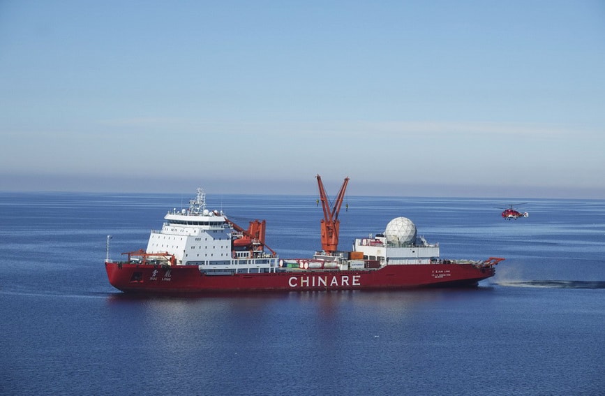 北京时间12月29日,执行中国第42次南极考察任务的“雪龙”号极地科考破冰船顺利抵达秦岭站海域,并开展卸货作业。本次卸运物资总重量约1400吨,包括秦岭站后勤保障物资、工程物资、科研物资和油料。物资将通过驳船卸运上站。新华社记者 顾天成 摄