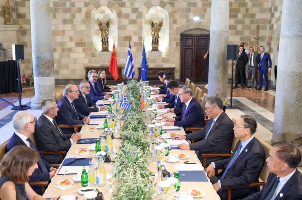 李强指出,中方愿同希方拉紧合作纽带,更好发挥互补优势,高质量推进比雷埃夫斯港总规划落地,推动两国贸易更加优化平衡发展,加强在清洁能源、输变电、人工智能等领域合作,培育更多经济新增长点。中方支持和鼓励更多有实力的中国企业根据市场原则,积极推进对希腊投资。双方要加强文明互鉴,密切旅游等人文交流,增进两国人民友好。中欧之间有着广泛的共同利益。当前全球单边主义、保护主义愈演愈烈,中欧应共同发出倡导多边主义和自由贸易的积极声音,携手维护经济全球化和国际经贸秩序。希望希腊继续为推进中欧关系发展发挥建设性作用。