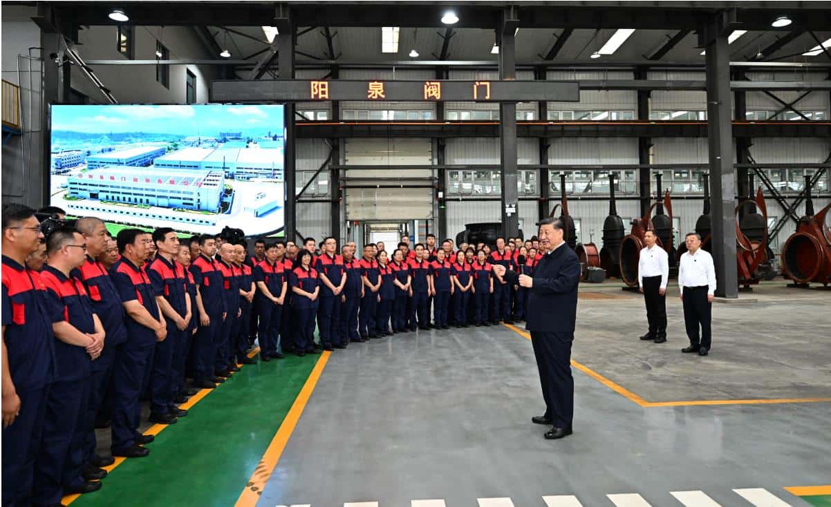 7日下午,习近平总书记在阳泉阀门股份有限公司考察。他察看企业生产车间和产品展示,同现场工人亲切交谈,了解山西加快产业转型升级、推动高质量发展等情况。