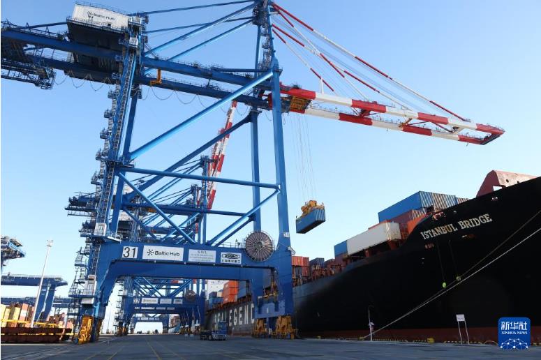 10月19日,从中国宁波舟山港出发的中欧北极快航航线首艘货船抵达波兰北部格但斯克港。新华社记者 崔力 摄