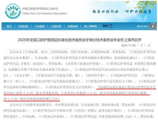 近日,上海市召开了2025年全国口腔护理用品标准化技术委员会牙膏分技术委员会年会议。会议共审定了15项标准,其中一项为由国内儿童口腔护理品牌兔头妈妈牵头推动的,有关牙膏中奥拉氟检测方法相关团体标准。根据我国团体标准发布流程,该标准有望在年底或明年年初上线,届时将为行业带来新的变革。