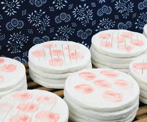 传统的制作方法: 白蒲茶干味美,选料考究,加工精细,操作认真,一丝不苟。人们检看茶干质量,常将茶干对角相折,总不断裂,而芳香扑鼻,人们夸奖说:“进了三里墩,闻到茶干香”,可见其味香沁人。白蒲茶干传统的操作过程,可以概括为以下几个方面:浸豆、糙皮、磨豆、扯 浆、煮浆、点浆、包、榨、剥、煮、扎等,细说有二十一道工序。白蒲茶干传统的加工,不仅工序多,而且每道工序的技术性都较强,与产品的质量有直接关系。以煮浆来说,烧火要旺,煮得越快越好,如慢火烧,则易潮浆,对质量,产量都有不利影响。煮好的浆出灶入缸时,要坚持“过筛”这一道工序,将扯浆或套浆时从布眼中漏出的反渣去尽,提高豆浆的纯度。这样做有三个好处,即:一是浆中的飞渣越少,生产出的茶干韧性越强;二是韧性强的茶干在煮制过程中破碎少,正品率高;三是韧性强的茶干耐煮制吸味足,口味好。