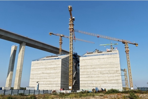 张靖皋长江大桥北航道桥南锚碇一期工程施工完成