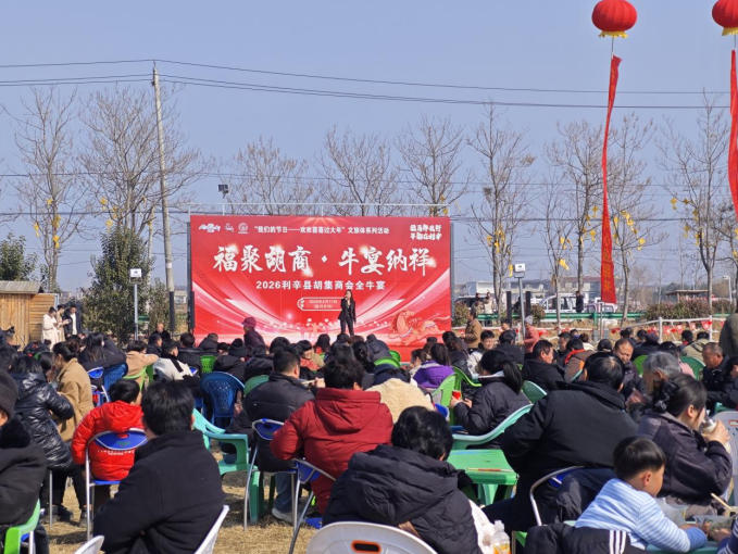 中国产经观察消息  2月11日,利辛县胡集镇青青草原上人潮涌动、热闹欢腾,“福聚胡商·牛宴纳祥”主题活动在此圆满举办。本次活动以商会成立为起点,融合民俗展演、全牛美宴、农产品展销与乡贤座谈等多种形式,集文化、美食、经贸、乡情、振兴于一体,全景式展现胡集镇农文旅深度融合的探索成果,跑出乡村振兴“加速度”。