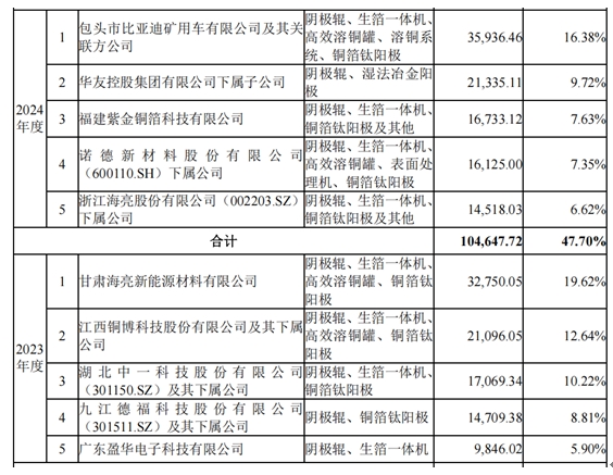 《招股书》显示,泰金新能前五大客户贡献收入过半,主要有海亮股份、比亚迪、诺德新材、中一科技等上市公司。