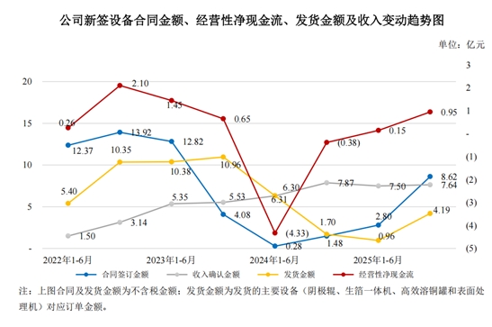 回复文件显示,从2025年开始,截止到9月底,泰金新能新签电解铜箔成套装备订单金额为8.6亿元,同比增加7.15亿元,同比增长接近5倍。由于合同预付款比例较高,所以,新签合同大量增加,也势必导致泰金新能合同负债的大额增加。