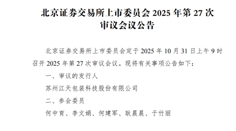 中国产经观察消息:北交所官网显示,苏州江天包装科技股份有限公司(简称“江天科技”)将于10月31日上会。