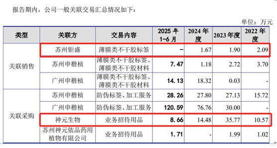 江天科技的关联交易网络错综复杂,引发监管深度关注。报告期内,公司向关联方苏州钜盛销售薄膜不干胶标签,而苏州钜盛由滕琪持股48%,且为公司厂区承租方;向神元生物采购业务招待用品,而神元生物由滕琪父母控制,滕琪本人亦持股2.8%。这些交易虽金额不大,但商业合理性存疑,北交所要求公司说明是否存在为发行人承担成本费用、利益输送等情形。