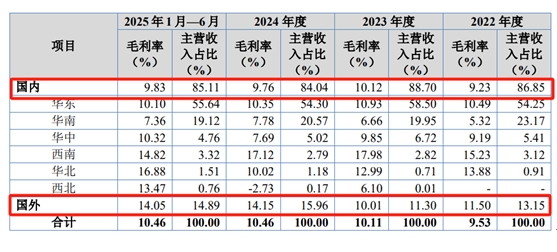 2021年至2025年上半年,兢强科技境外毛利率分别为17.03%、11.50%、10.01%、14.15%、14.05%,远高于境内毛利率的15.13%、9.23%、10.12%、9.76%、9.83%。境内外毛利率变动趋势相反的现象,引发了北交所的灵魂拷问。兢强科技解释称,境外市场产品结构和客户群体与境内存在差异,导致毛利率有所不同。但这种解释未能充分说明毛利率变动趋势相反的深层次原因,市场对于公司毛利率合理性的质疑仍未消除。
