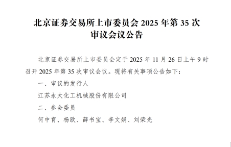中国产经观察消息:2025年11月26日,江苏永大化工机械股份有限公司(以下简称“永大股份”)即将迎来北交所上市的关键审议。这家深耕压力容器领域十余载、头顶“国家级专精特新‘小巨人’”光环的企业,在资本市场的聚光灯下,却因业绩波动、客户依赖、财务疑云等多重风险,陷入舆论漩涡。其冲刺北交所的征程,更像是一场在行业周期波动中“走钢丝”的冒险。