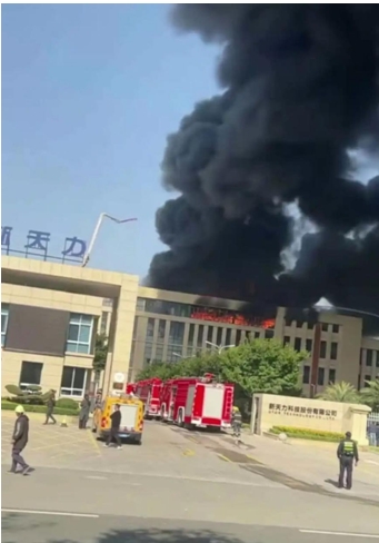 2025年11月27日上午,位于浙江台州市台州湾新区蓬北大道的新天力生产基地突发火灾,现场火势燃烧猛烈,黑烟滚滚。网上视频显示,熊熊燃烧的火焰伴随着滚滚浓烟从一厂房建筑里往外喷涌,十几公里外都能看见。