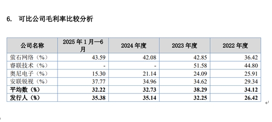 2022-2025年上半年,觅睿科技毛利率分别为26.42%、32.25%、35.14%和35.38%,呈现逐年上升的趋势,而行业均值分别为34.12%、38.29%、32.73%和32.22%,呈下降趋势。与此同时,公司应收账款周转率分别为11.72次、13.1次、11.8次和9.33次。毛利率增长而应收账款周转率却下降。这些异常的数据表现,进一步加剧了市场对公司财务数据真实性的担忧。