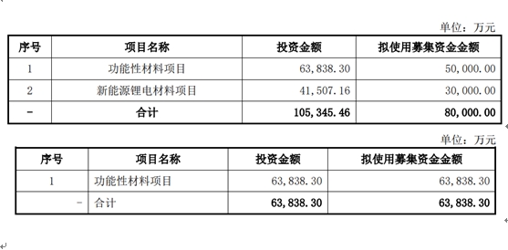 新广益原计划募集资金8亿元,扣除发行费用后,将用于功能性材料项目、新能源锂电材料项目,拟投入募集资金金额分别约为5亿元、3亿元。然而,在上会稿中,新广益取消了新能源锂电材料项目,并对功能性材料项目拟使用募集资金增加约1.38亿元,募投项目进行调整后,拟首发募资金额从8亿元缩水至6.38亿元。这种在审核期间主动缩减募资规模的行为,是否意味着公司自己也意识到原先的募投计划存在不合理之处?或者是对监管问询的被动应对?