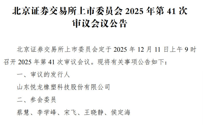 中国产经观察消息:2025年12月11日,山东悦龙橡塑科技股份有限公司(以下简称“悦龙科技”)即将迎来北交所上市委的终极考验。然而,在看似顺风顺水的上市进程背后,悦龙科技却隐藏着诸多令人担忧的问题,这些问题犹如一颗颗定时炸弹,随时可能对其上市之路造成致命打击。