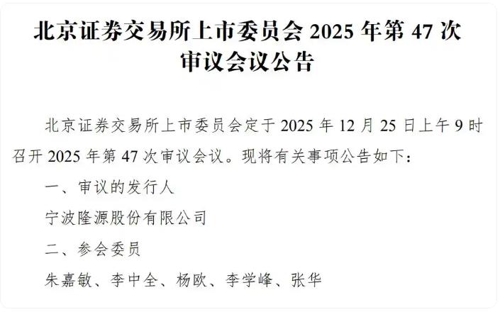 中国产经观察消息:2025年12月25日,宁波隆源股份有限公司(以下简称“隆源股份”)即将迎来北交所首发上会审核的关键时刻。这家专业从事铝合金精密压铸件研发、生产与销售的企业,虽怀揣着上市梦想,但深入剖析其招股说明书及过往审核问询函回复内容,诸多潜在风险和问题逐渐浮出水面,为其上市之路蒙上一层阴影。