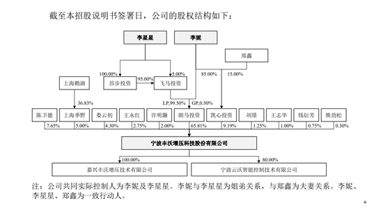 丰沃股份的成长轨迹与吉利集团密不可分。从股权结构看,招股书显示,朗马投资持有丰沃股份的股份比例为65.81%,为公司的控股股东,凯心投资则持有丰沃股份9.19%的股份。此外,李妮直接持有朗马投资0.5%的财产份额并担任执行事务合伙人,李星星实际控制的飞马投资直接持有朗马投资99.5%的财产份额,李妮与李星星系姐弟关系。李妮、李星星能够共同控制朗马投资,从而通过朗马投资能够控制丰沃股份65.81%的股份表决权。然后,李妮及其配偶持有凯心投资100%的股权,凯心投资持有丰沃股9.19%的股份。因此,李妮、李星星能够合计实际控制发行人75%的股份表决权,为丰沃股份的实际控制人。而李妮、李星星则为吉利集团创始人李书福的儿子和女儿,一旦丰沃股份成功上市,将成为李书福家族第12家上市公司。
